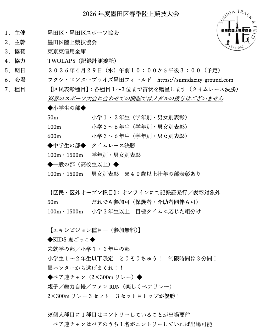 春の墨田で、誰でも気軽に参加できる陸上競技大会を開催します!