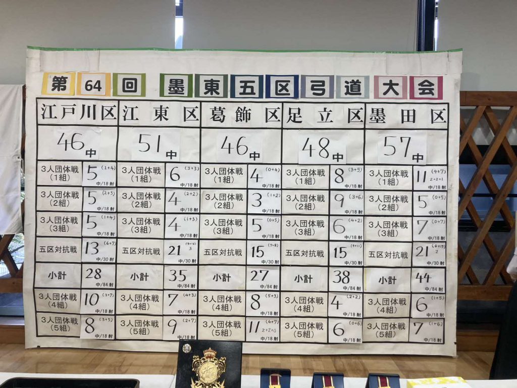 墨田区が見事1位を獲得!120射57中で他区を制しました。