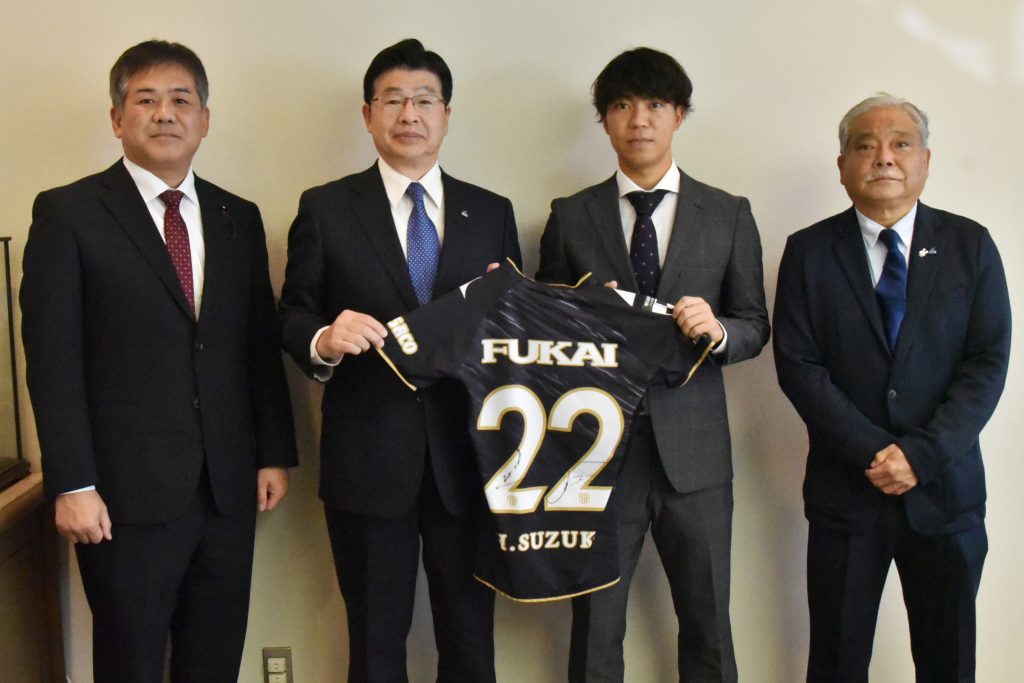 中川フットボールクラブ出身の栃木シティーFC 22「鈴木 裕斗」選手が、12月26日に墨田区長を表敬訪問しJ2昇格を報告しました。
